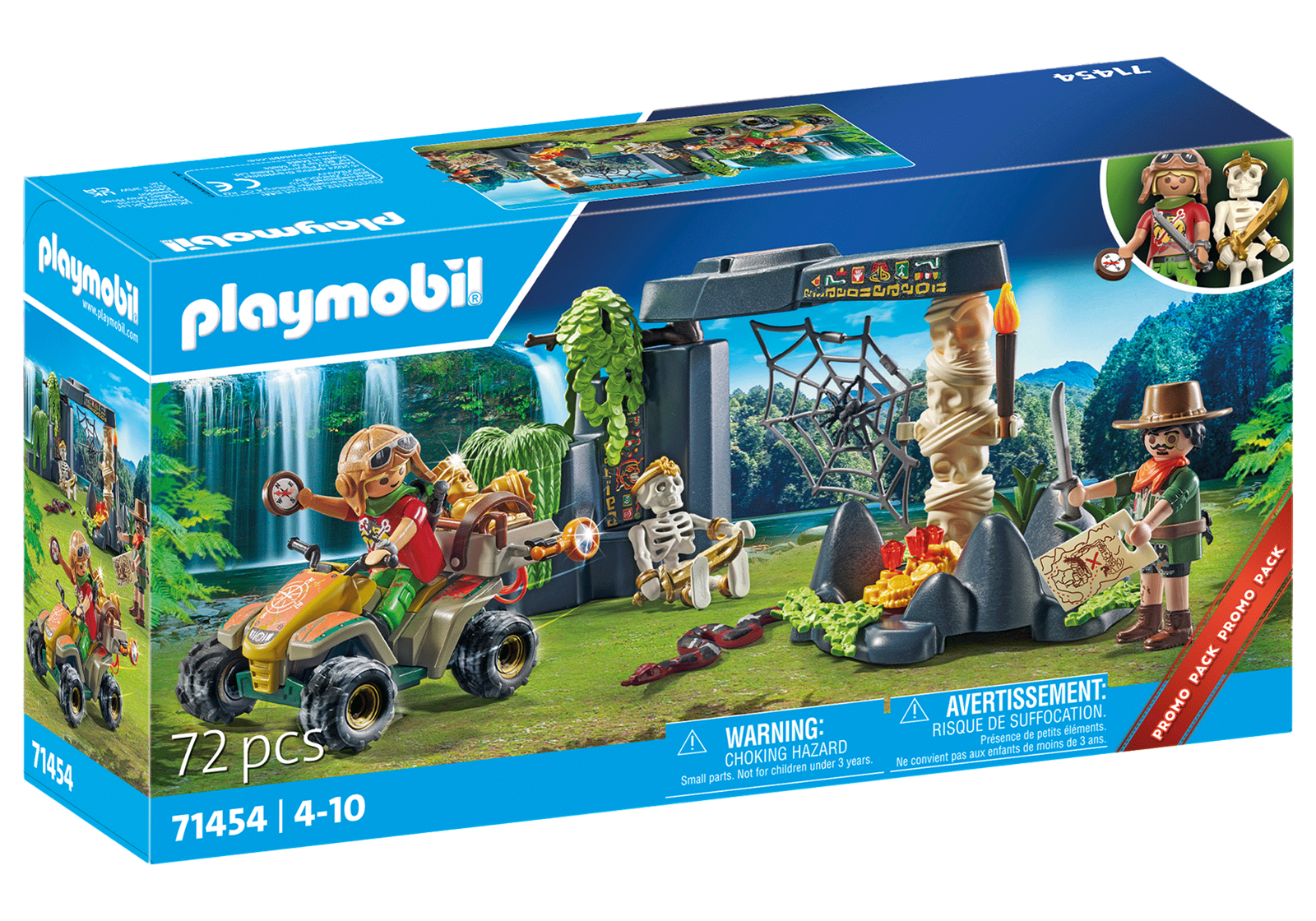 Extragroßen Spielspaß zum kleinen Preis gibt es mit den tollen PLAYMOBIL Promo Packs! Abenteuerlustige Kinder ab 4 Jahren werden von diesem PLAYMOBIL-Set begeistert sein. Ausgerüstet mit Quad, Schatzkarte und Kompass geht es auf zur spannenden Schatzsuche im Dschungel. Doch bevor die Abenteuerer den Schatz erbeuten, müssen sie erstmal an Spinne und Schlange vorbei. Wer traut sich zuerst? Dieses detailreiche PLAYMOBIL-Set enthält 2 PLAYMOBIL-Figuren und ein Skelett, ein Quad, ein Felstor, einen Schatz und viele weitere tolle Extras für aufregende Dschungelabenteuer.
