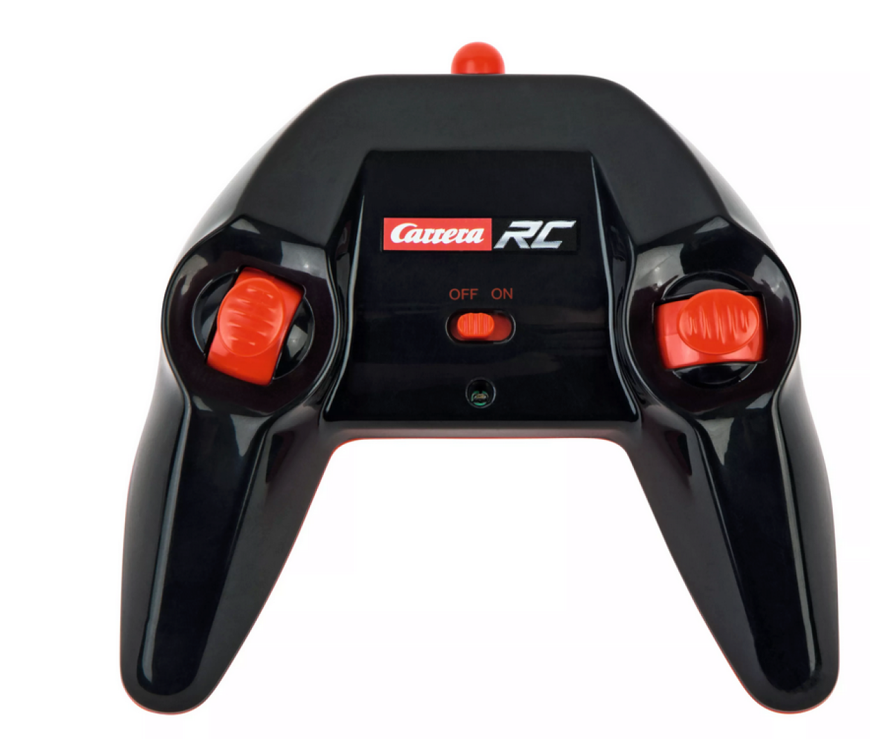 Das ca. 28 cm lange Modell fährt dank Luftreifen und Federung zuverlässig über Stock und Stein und sorgt dabei für jede Menge Fahrspaß. Mit einer Geschwindigkeit von bis zu 12 km/h können die Fahrer auch im Rennen ordentlich Gas geben. Dank der 2,4 GHz Technologie treten sie gegen bis zu 15 weitere Gegner an. Damit der Fahrspaß direkt aus der Verpackung starten kann, sind neben Fahrzeug und Controller auch die benötigten Batterien im Lieferumfang enthalten.