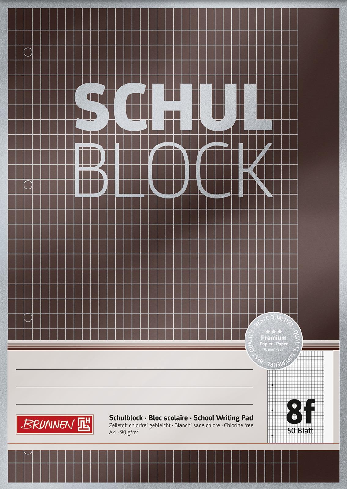 Schulblock A4 Premium 50 Blatt 5 x 7 rautiert mit Rand, Lineatur 8f 4-fach-gelocht A4 90 g/m² mehr