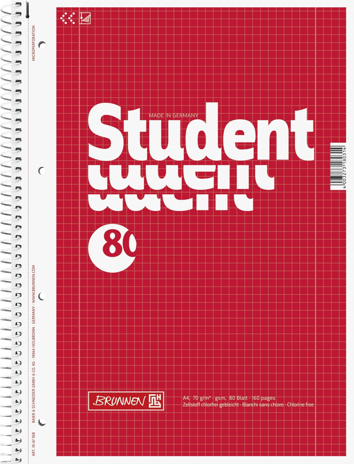 BRUNNEN 1067928 Collegeblock Student, A4, 80 Blatt, gelocht, Lineatur 28
