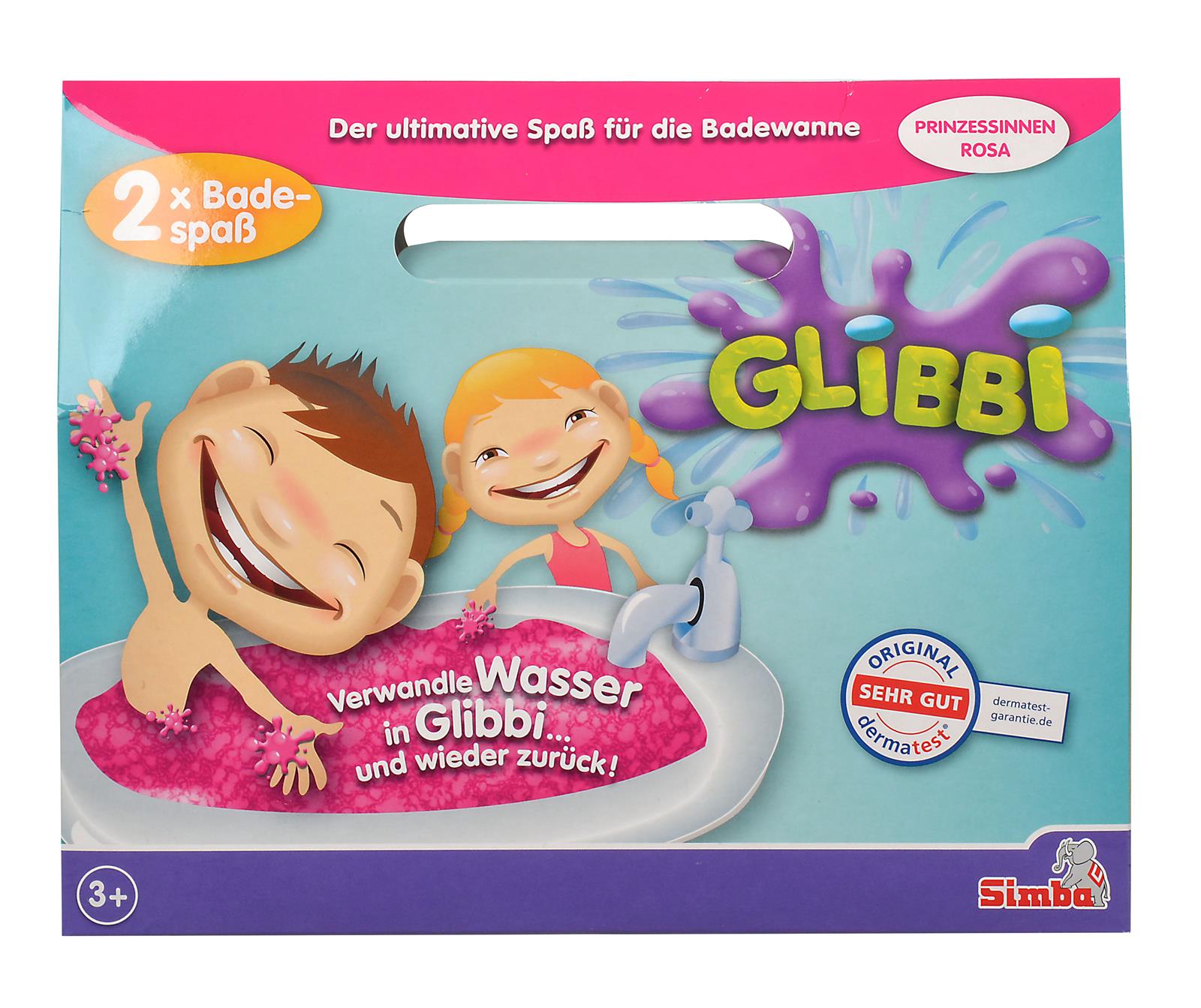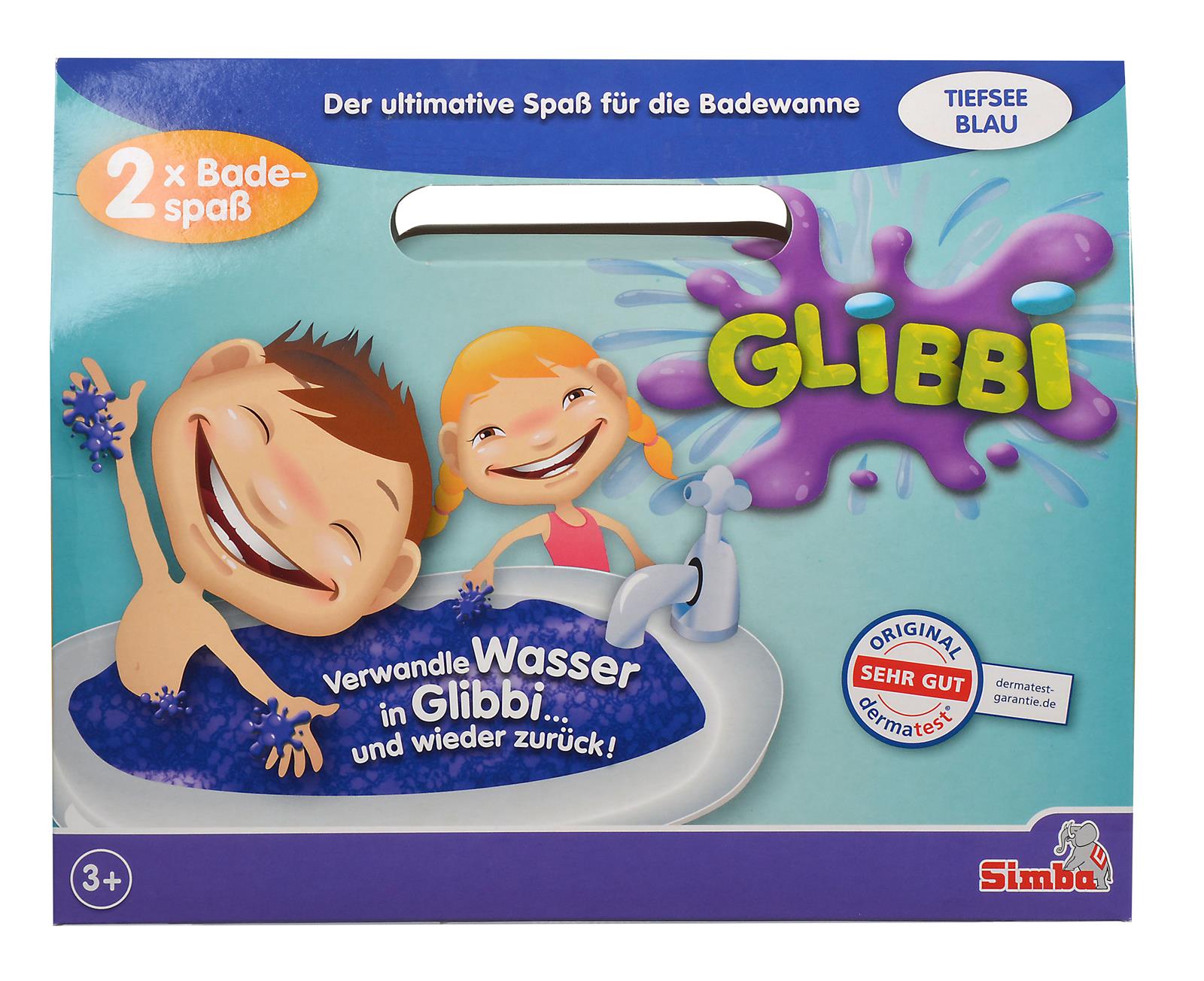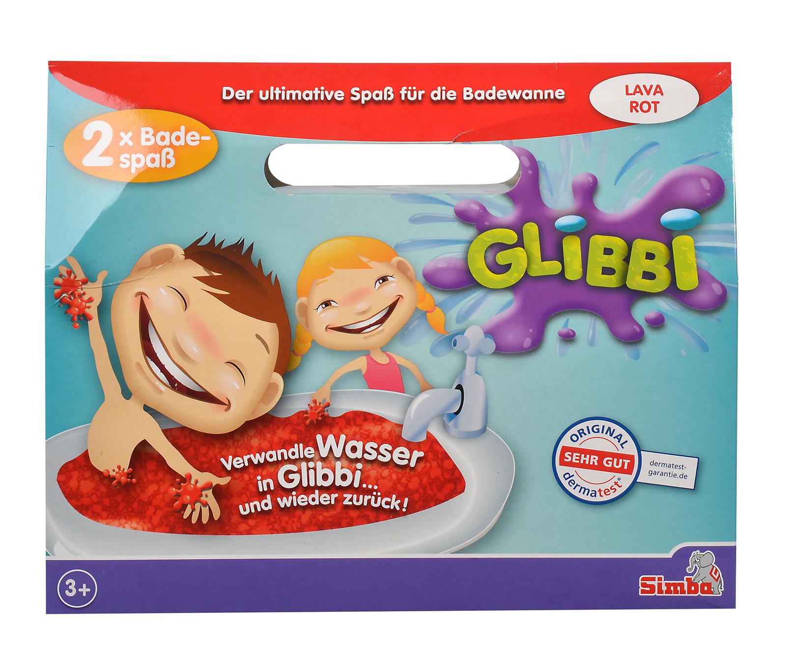 GLIBBI Glibber, der glibbrige Badespaß von Simba für Kinder. Der Badezusatz ist in den Farben lavarot, prinzessinnenrosa, dschungelgrün und tiefseeblau erhältlich und verwandelt Wasser zu Badeglibber und wieder zurück in Wasser.