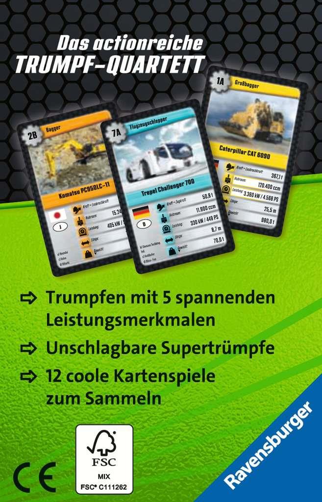 32 coole Abbildungen und viele Infos über die Modelle begeistern die Fans: Welches Schwergewicht hat die größte Zugkraft? Und welches die höchste Leistung? Hier übertrumpfen sich die besten Merkmale aus fünf Leistungs-Kategorien. Wer am Ende alle Karten besitzt, gewinnt die spannende Runde.