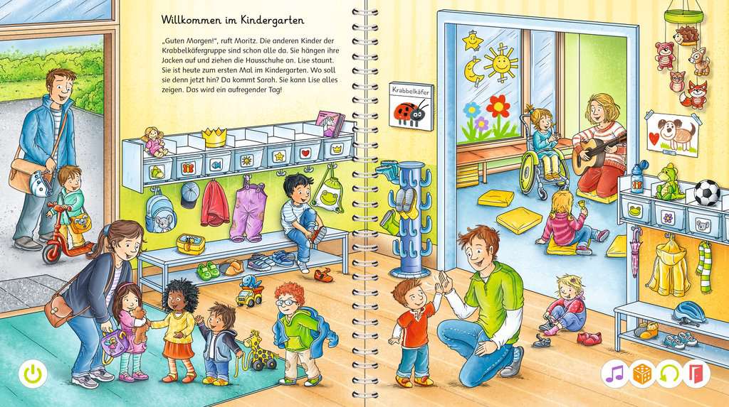 Auspacken und loslegen! Das Starter-Set ist perfekt für den Einstieg in tiptoi - das spielerische Lernsystem. Die benötigte Audiodatei ist auf dem Stift vorinstalliert und der integrierte Akku geladen. Basteln, toben, singen und erzählen: Im Wörter-Bilderbuch wird die Welt des Kindergartens durch zahlreiche Geräusche, witzige Reime, Lieder und Dialoge lebendig. Mit tiptoi erweitern Kinder ab 3 Jahren spielerisch ihren Wortschatz. So macht Lernen richtig Spaß!